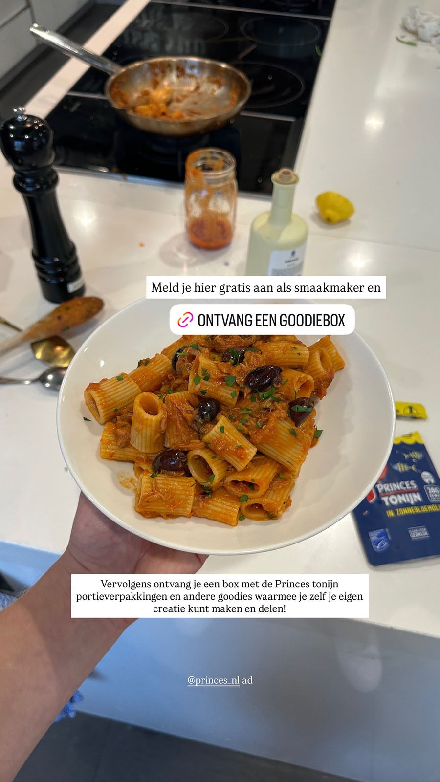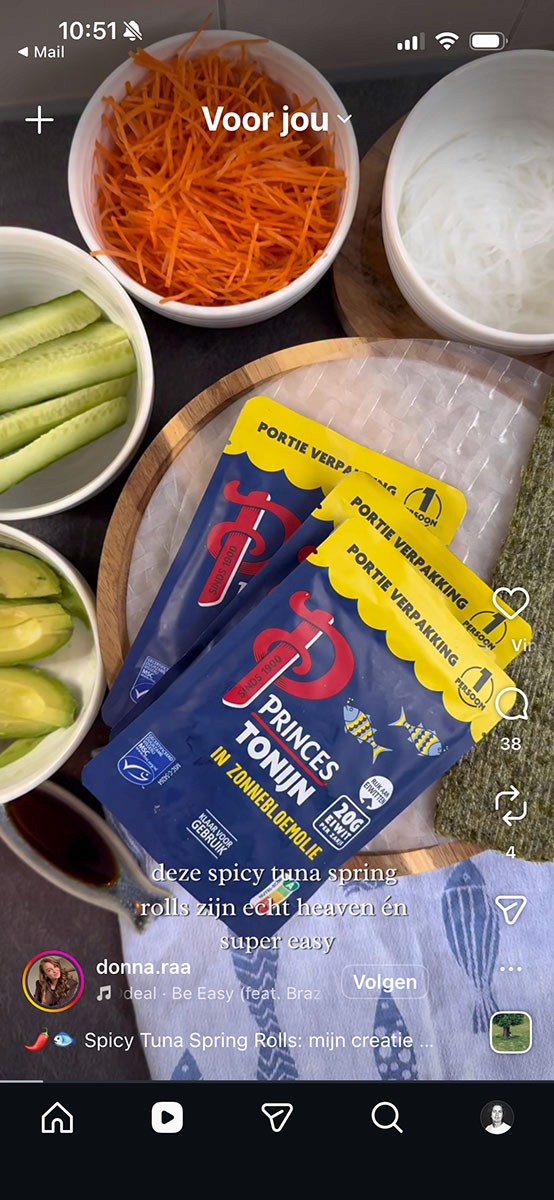 Met de introductie van de nieuwe Princes tonijn portieverpakkingen wilde Princes vooral één ding: top-of-mind worden op gemak én inspiratie. De campagne zette in op awareness, maar vooral op het “oh ja, dit is handig”-moment in de keuken: snel iets eiwitrijks maken zonder gedoe. Daarom kozen we voor een creator-gedreven aftrap (hero content) én een Smaakmakers-laag die het product letterlijk bij mensen thuis op het aanrecht kreeg—zodat inspiratie direct veranderde in gebruik.
