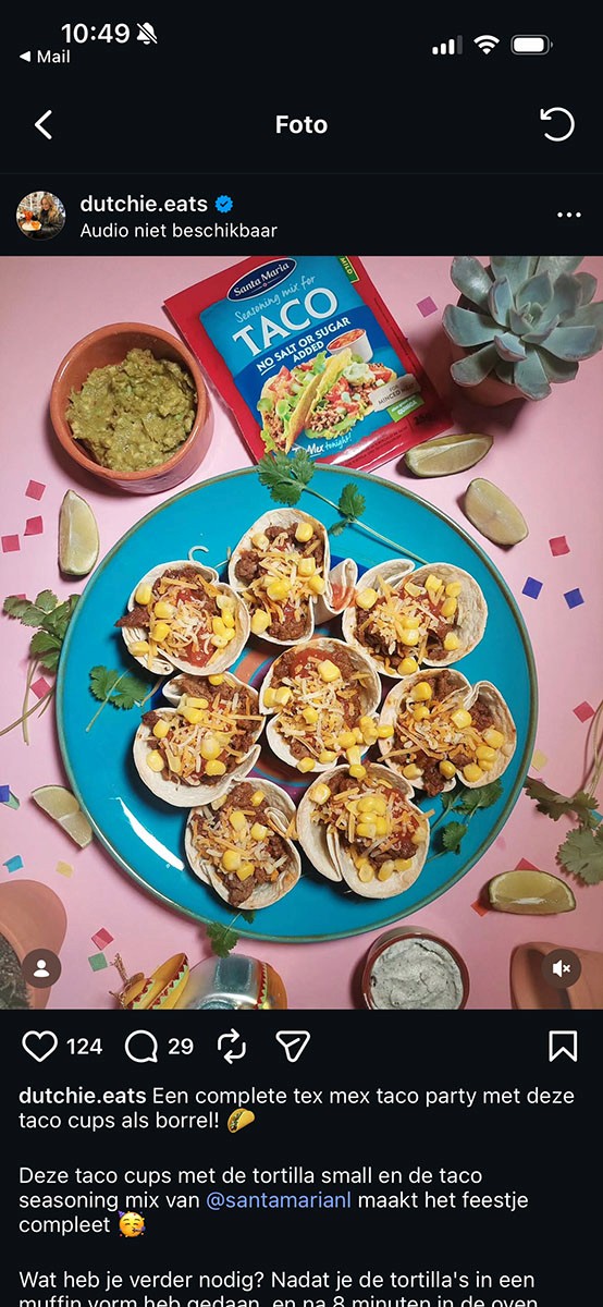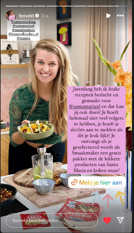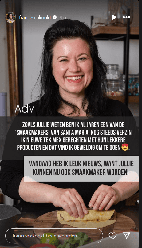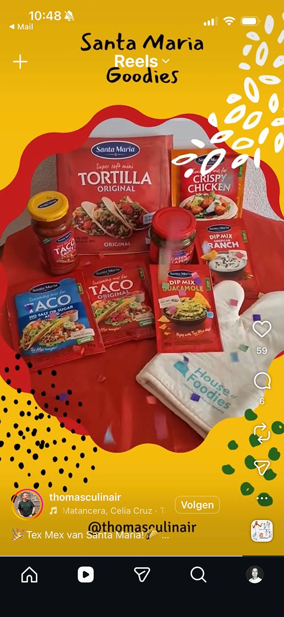 Door de “Smaakmakers” groep te voorzien van producten, konden zij unieke recepten creëren en waardevolle User Generated Content (UGC) produceren. Deze content werd niet alleen gedeeld via hun eigen sociale media-kanalen, maar ook beschikbaar gesteld voor gebruik en verspreiding via de kanalen van Santa Maria.
